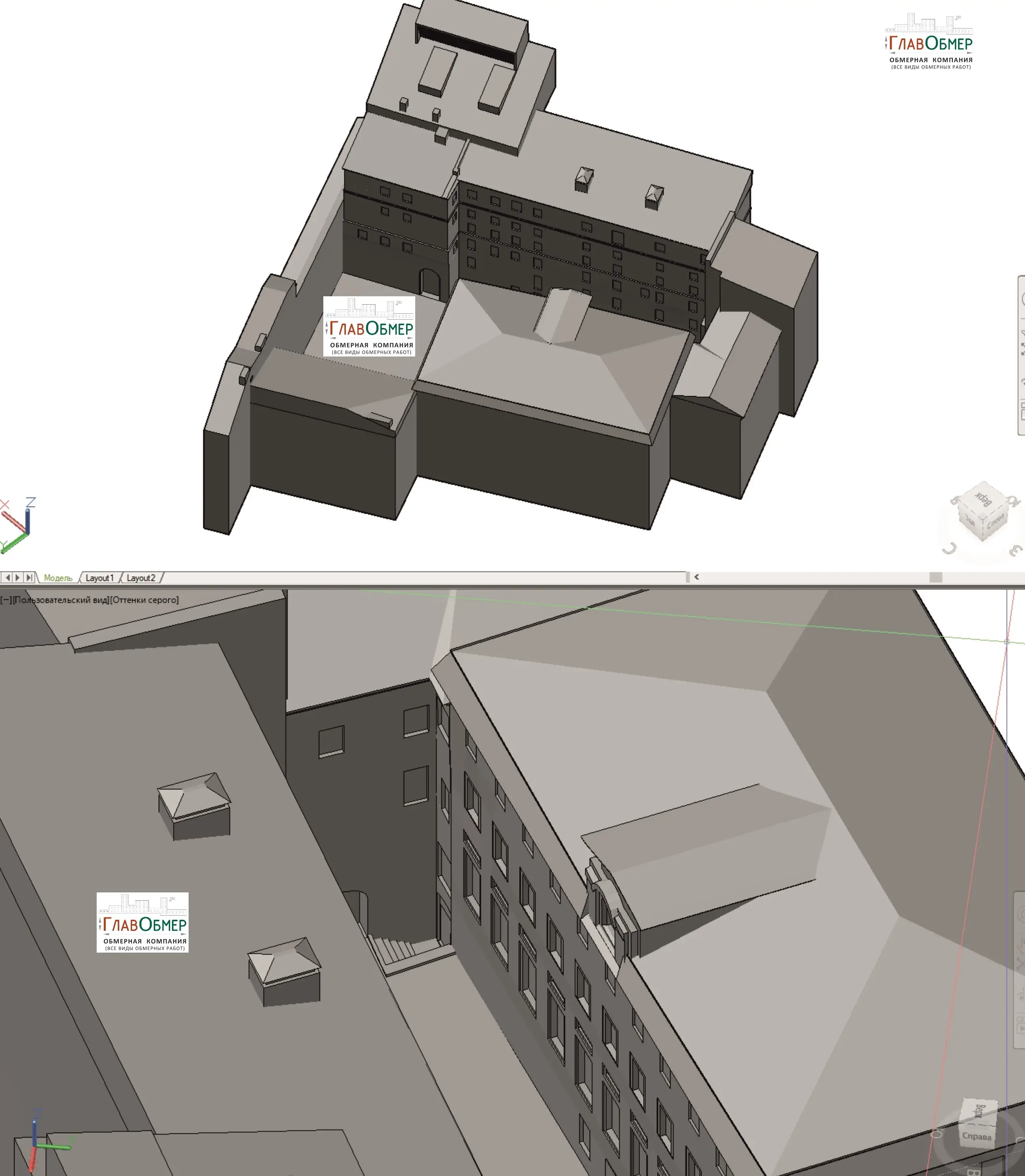Возможно выполнение 3Д-моделирование зданий в различных вариантах: